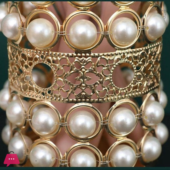 - Unique openwork shape with inlaid pearls for a luxurious look.