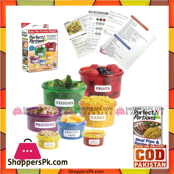 Perfect Portions 7-Piece Labelled Color Coded Dishwasher Microwave Safe Diet Portion Control Containers