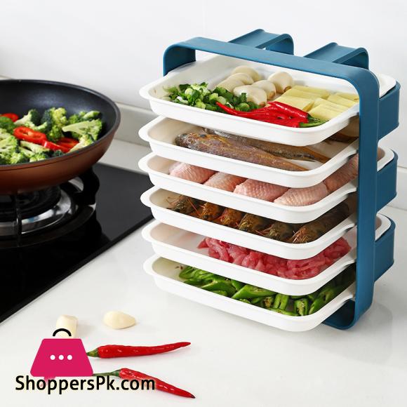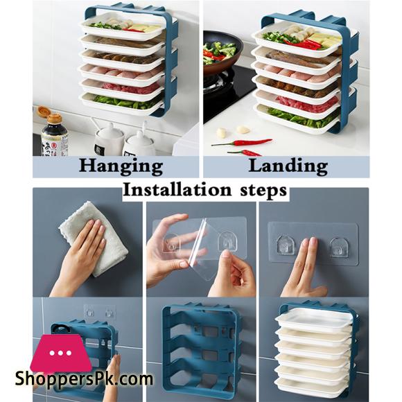 Plastic Plates Set with Wall Mounted Holder Space Saving Kitchen Food Storage Organizer Stackable Cooking Dishes Plate – 6 Pcs