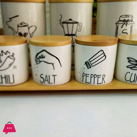 Be the first to review “Porcelain Spice Set 8-Piece Bamboo Wooden Stand” Cancel reply