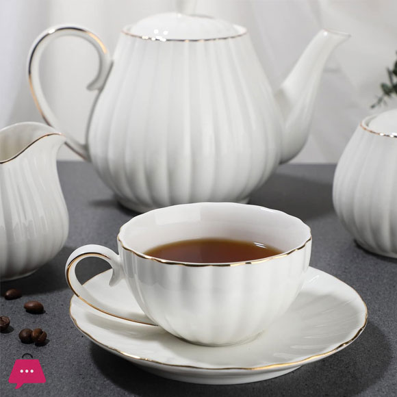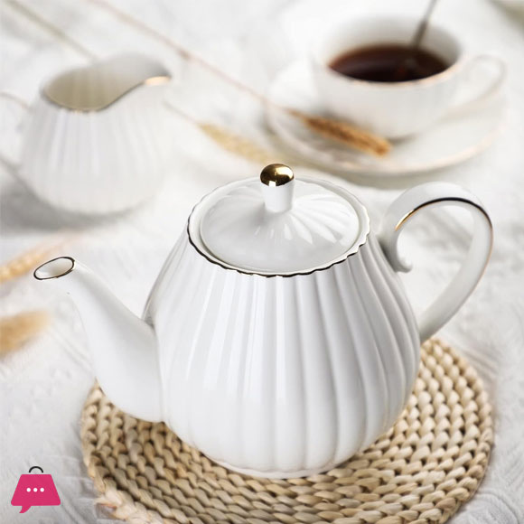 - PRODUCT FEATURES Simple white tea pot sets with gold rims, looks elegant. With its simple yet elegant design, this tea set will effortlessly complement any style of decor