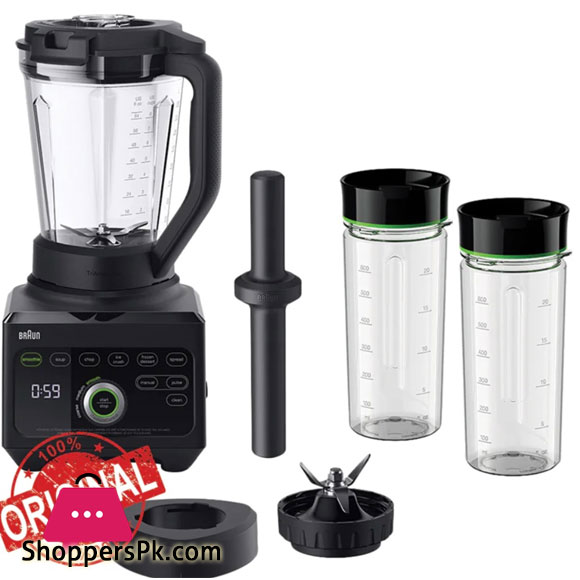 Uniquely engineered triangular-shaped jug ensures ingredients redirected faster to the blending areas.