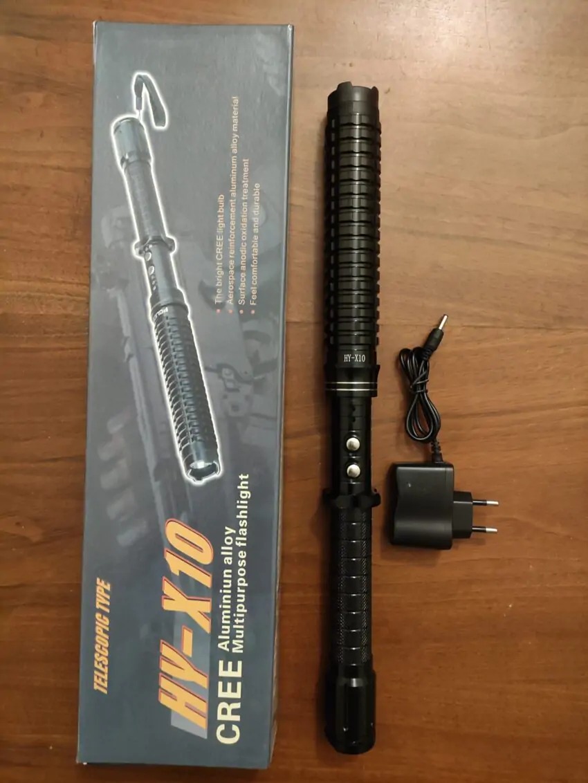 Powerful Self Defense Telescopic Taser Baton Rechargeable Tactical Q5 Led Flashlight with Zoom