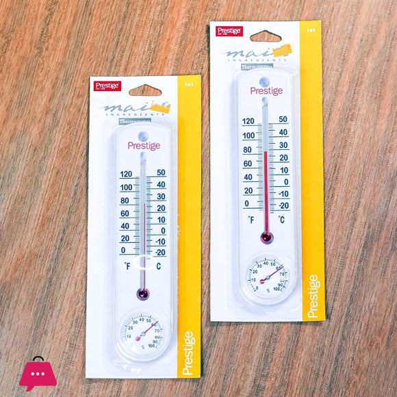 Prestige Cooking Kitchen Tools that will help you for Daily Cooking.The Prestige BS Thermometer is a multi-function handy tool for measuring the temperature and humidity, indoors and outdoors. It is wall mountable for convenience and comes with a built-in hygrometer. The dual scale of Centigrade and Fahrenheit, and Humidity Percentage dial with clearly defined markings on the surface makes this a simple and easy to use tool for accurate measurement of the temperatures and to monitor humidity levels.