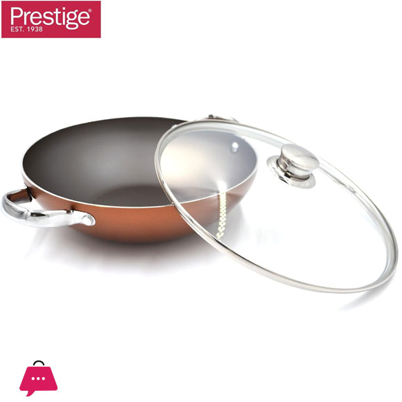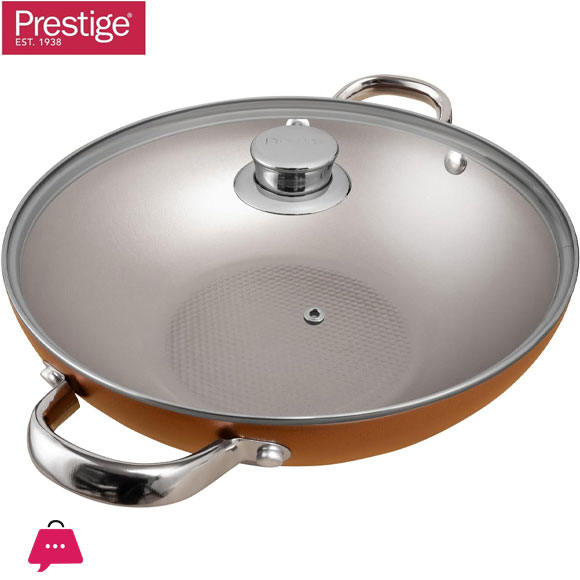 Prestige Ultra Non Stick Kadai with Glass Lid and Induction-Based Triple Layered Non-Stick Coated Wok – 28CM