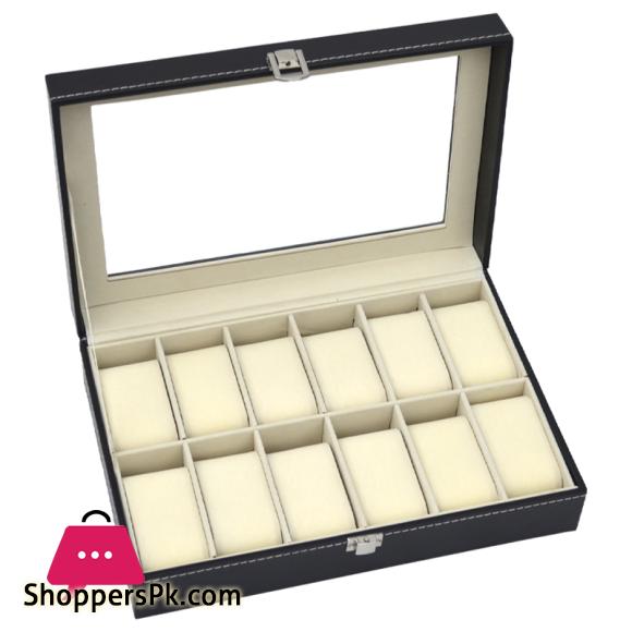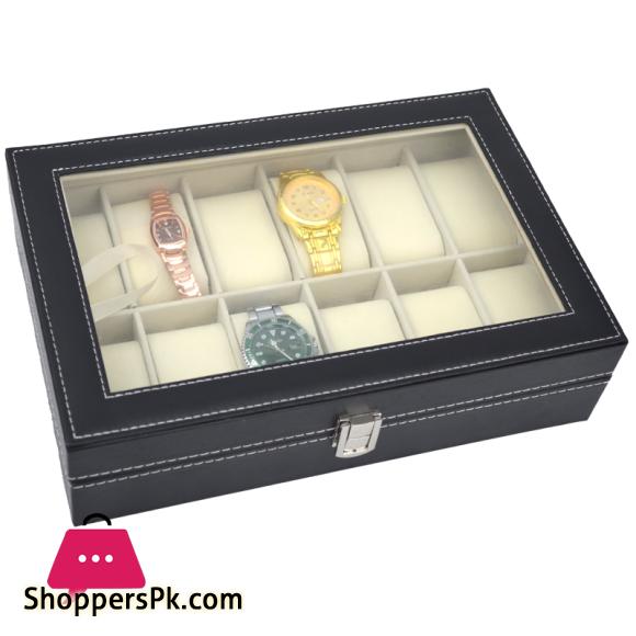 PU Leather Watch Box For Men Watch Display Case With Glass 12-Watch