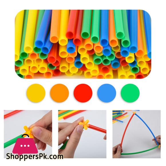 RAINBOW Building Straws and Connectors – STEM Blocks Construction Toys for Boys & Girls – 110 Pcs Straw Building Set – Engineering Connector Blocks for Kids