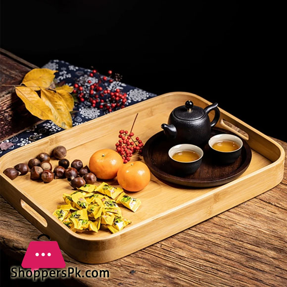 Rectangular Bamboo Wooden Tea Tray Solid Wood Serving Tray Kung Fu Tea Cup Tray with Handle Wooden Dinner Bread Fruit Food Plate