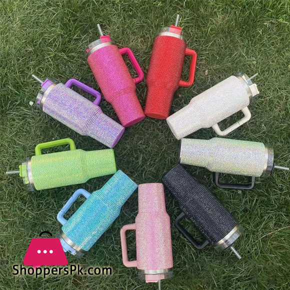 Rhinestone 40oz Travel Coffee Mug with Lid Reusable Insulated Stainless Steel