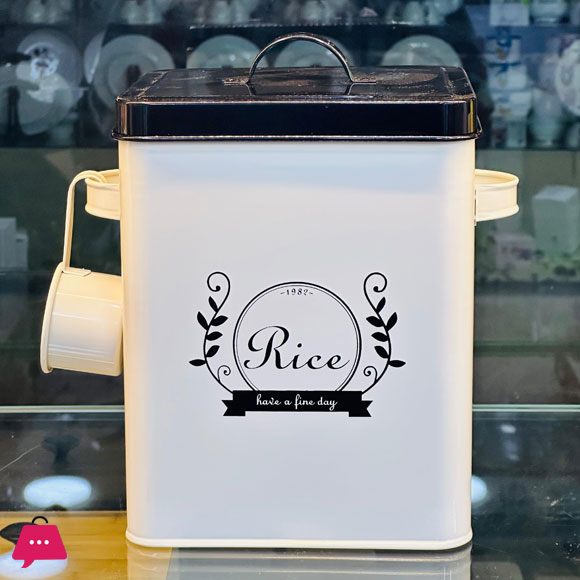 Rice Barrel with Spoon and Lid Household Tin Iron Rice Bucket – 5Kg