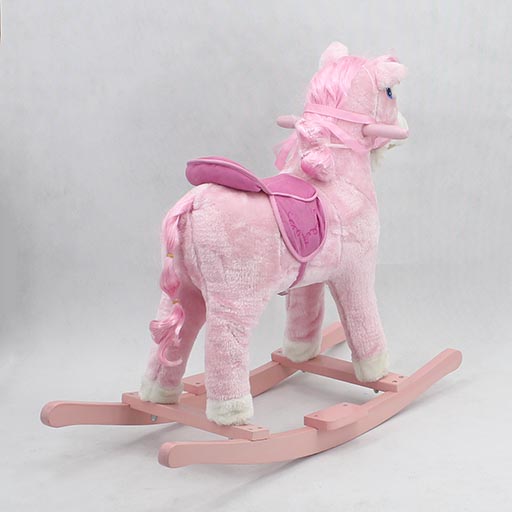 - Sturdy wooden rocker frame. Squeeze one ear to hear over 10 seconds of galloping and neighing sounds.