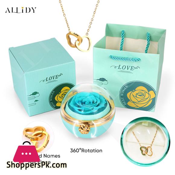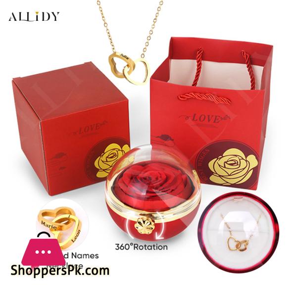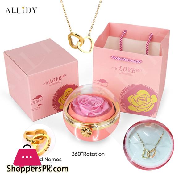 Rotating Rose Flower Jewelry Box Necklace Set Gift Box with for Friend