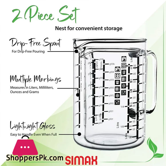 Simax Borosilicate Fireproof Measuring Jugs 1L & 500ml Set of 2