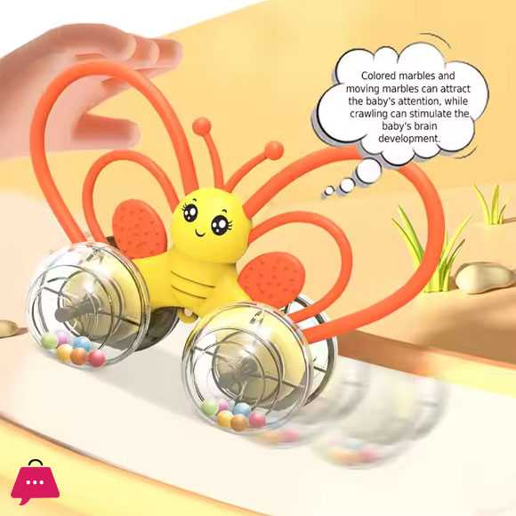 Soft Silicone Teether Rattles Kids Mini Push Car Cartoon butterfly Sensory Silicone Baby Rattle