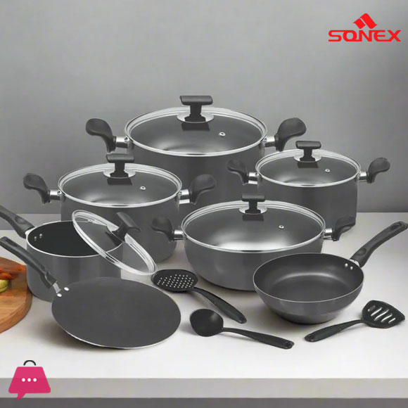 Sonex Non-Stick Kitchen set Carrolli Gift Pack Cookware set With Glas Random Color Best Quality