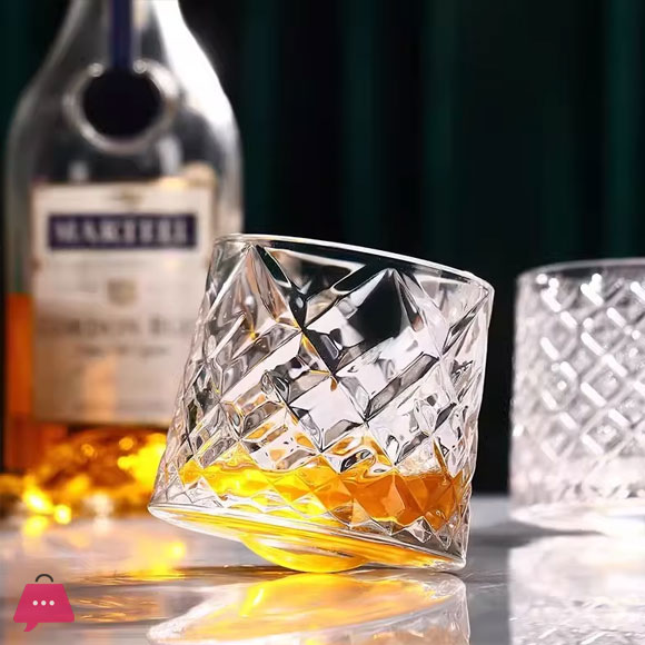 Spinning Crystal Tumbler Glass with Base Rotating Glass Drinkware for Bar and Home 1-Pcs