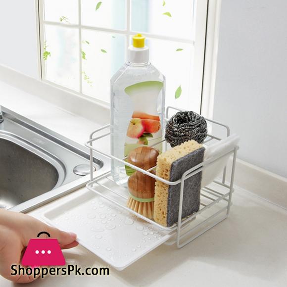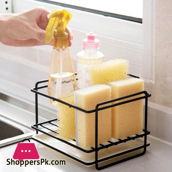 Sponge Holder Soap Drain Storage Rack Kitchen Sink Organizer Dishcloth Brush Holder Iron Shelf Bathroom Organizer Black