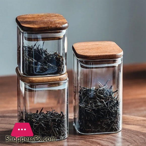 Square Wooden Lid Glass Storage Jar Candy Snacks Coffee Beans Sealed Storage Jar
