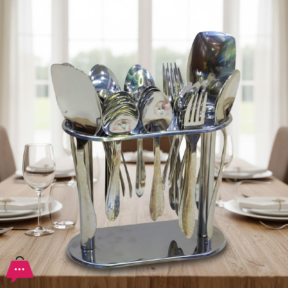 Stainless Steel Cutlery Set with Stand 23-Piece