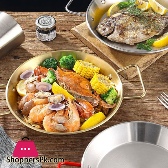Be the first to review “Stainless Steel Golden Serving Tray Round Spanish Seafood Cooking Pan with Two Handles Wok – 30cm” Cancel reply