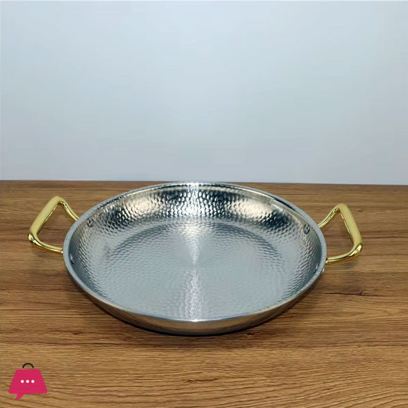 Stainless Steel Hand Hammered Seafood Paella Pan Non Stick Paella Cookware Pot with Dual Rivets Handles For Homes Or Restaurants – 24cm