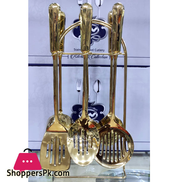 Stainless Steel Heavy Gauge Golden Kitchen Sets Cooking Spoon Set of 7 Size 15Inch