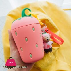 Strawberry Glass Cute Water Bottle Portable Kids Water Bottle with Lid Handle