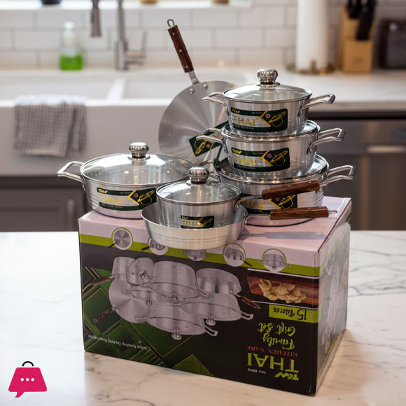 Thai Kitchen ware Cookware Set of 15 pieces – Glass Lid