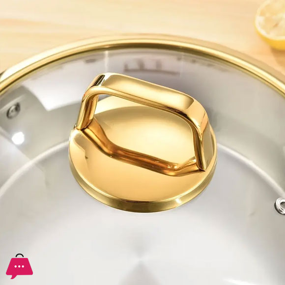 Three-Layer Stainless Steel Cooking Pot 304 Stainless Steel Soup Pot, with a Gold-Edged Glass Lid, Hand-Hammered Textured – 30CM