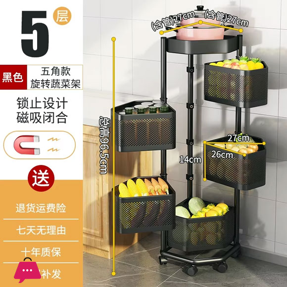 Triangle Rotating Storage Rack Kitchen Storage Rack Floor-Standing Corner Fruit and Vegetable Basket – 5 Layer