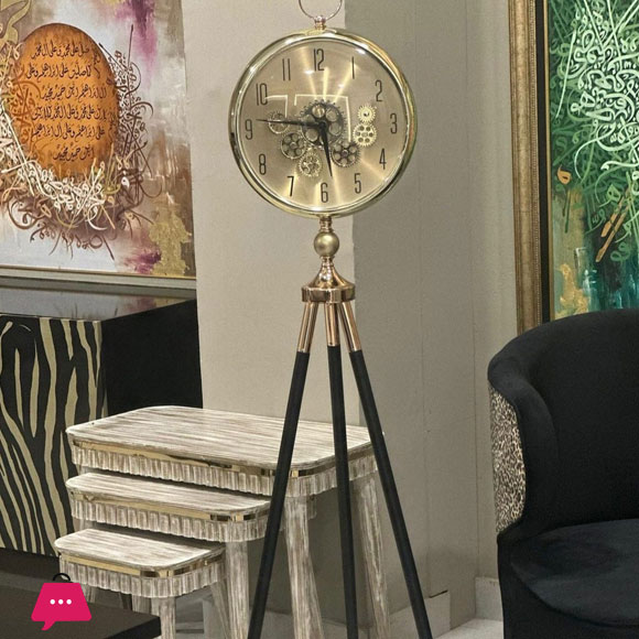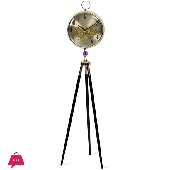 Tripod Floor Clock with Retro Gold Mechanical Gear Design