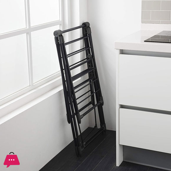The clothes drying stand is an ideal choice for drying your clothes and other fabrics. Its design allows you to arrange washed pants, t-shirts, pajamas, delicate clothing items, and more. In addition, this clothes drying rack has a stable construction to ensure durable use. What’s more, it features a folding design allowing you to easily store it in any closet or under a bed.