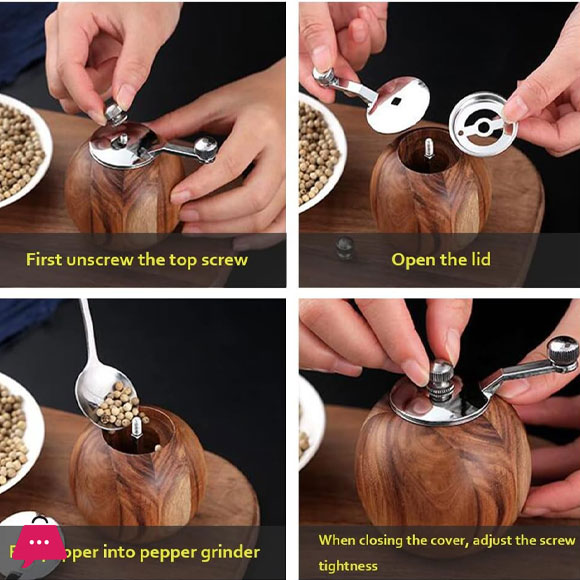 Manual Spice Mill Wood, with Adjustable Salt & Pepper Mill Wood, Wood Pepper Mill Salt Mill